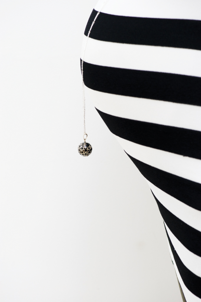 Le Bola de grossesse est un petit bijou musical d'origine mexicaine composé d'une petite balle contenant un mini xylophone qui emet un léger tintement apaisant au rythme des mouvements de la future maman.