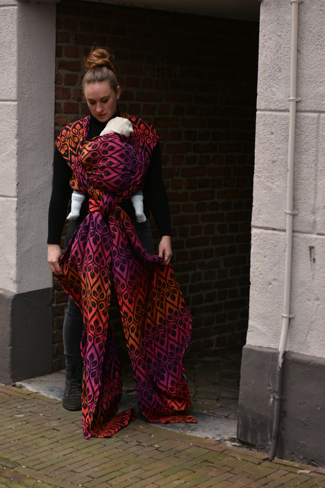 Une écharpe trop longue et non adaptée à la morphologie du porteur rendra l'écharpe difficile à ajuster.