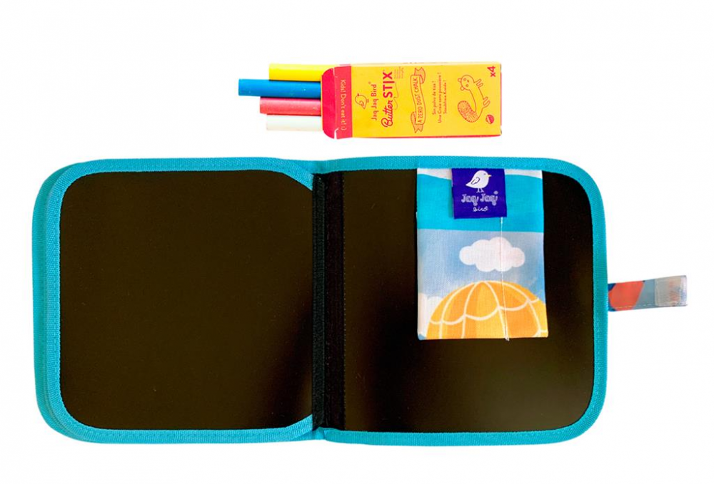 Il s'agit d'un cahier de 8 pages en ardoise souple sur lequel votre enfant (mais aussi toute la famille) pourra laisser divaguer son esprit créatif et dessiner en tout lieu. Sa particularité est qu'il est effaçable et réutilisable à l'infini, un simple coup de chiffon humide suffit!
