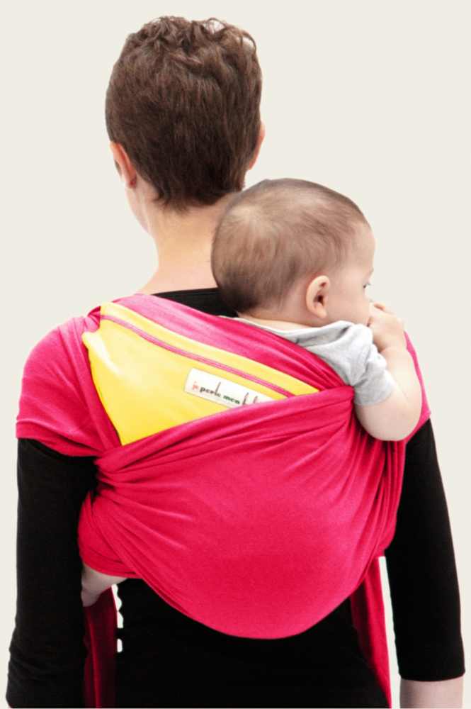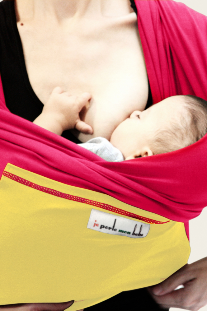 Écharpe de portage JPMBB Originale Fuschia, poche Citron