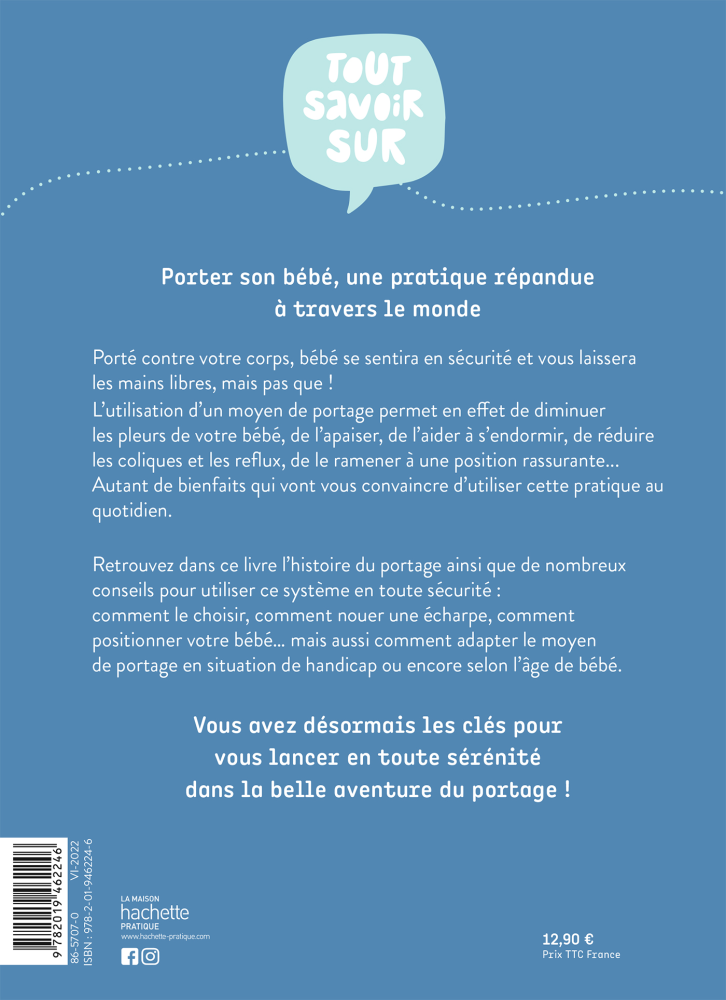 Retrouvez dans ce livre de Marion Leuger (Psychomotricienne et monitrice de portage) l'histoire du portage ainsi que de nombreux conseils pour utiliser votre porte-bébé en toute sécurité : comment le choisir, comment nouer une écharpe de portage, comment positionner son bébé... mais aussi comment adapter le moyen de portage en situation de handicap ou encore selon l'âge de bébé. Vous avez désormais les clés pour vous lancer en toute sécurité dans la belle aventure du portage !