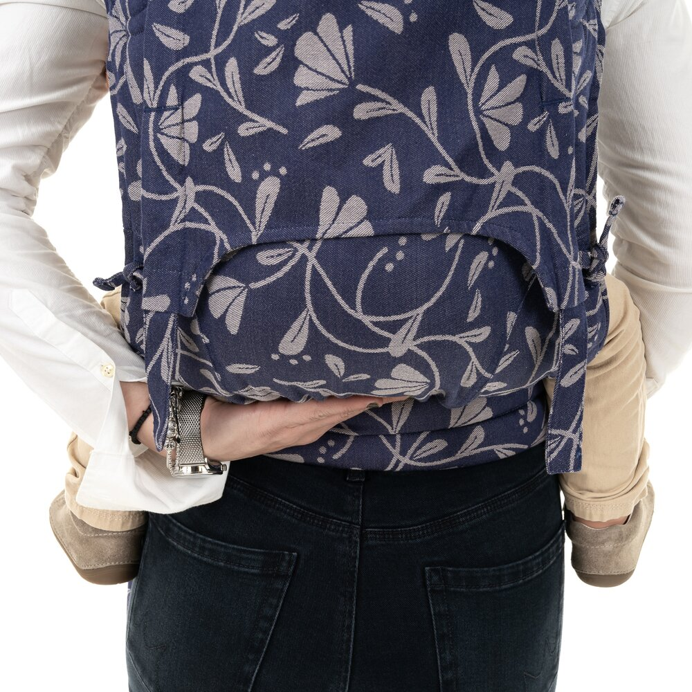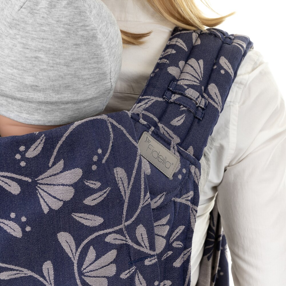 Le Flytai Floral Touch Eclipse Bleu Toddler de Fidella est un porte-bébé type mei-tai mixte. Ses bretelles sont à la fois rembourrées et déployables au niveau des épaules du porteur pour améliorer le confort en répartissant le poids de bébé.