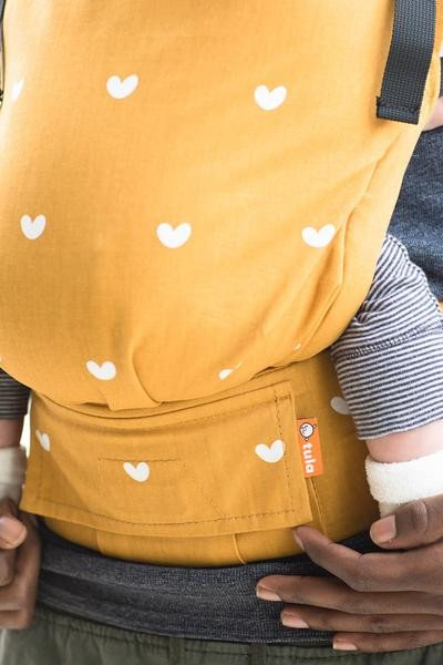 Le modèle Play est un porte-bébé édition limitée Printemps 2017 couleur jaune sable très tendance avec pleins de petits coeurs pour afficher votre amour pour votre progéniture au monde entier!