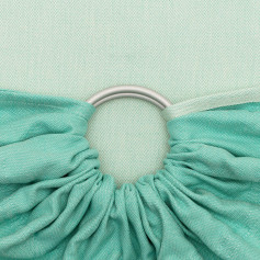 Simplifiez-vous la vie en portant votre bébé en sling! Le RingSling Chevron Turquoise Mint de Fidella est une écharpe de portage sans noeud avec un coloris doux et estival!