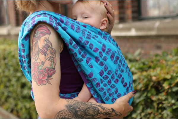 Le Ring Sling Petals Ultra Purple Blue Bamboo Tencel est une écharpe à anneaux très facile et rapide à installer.